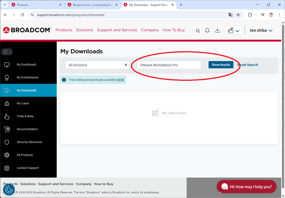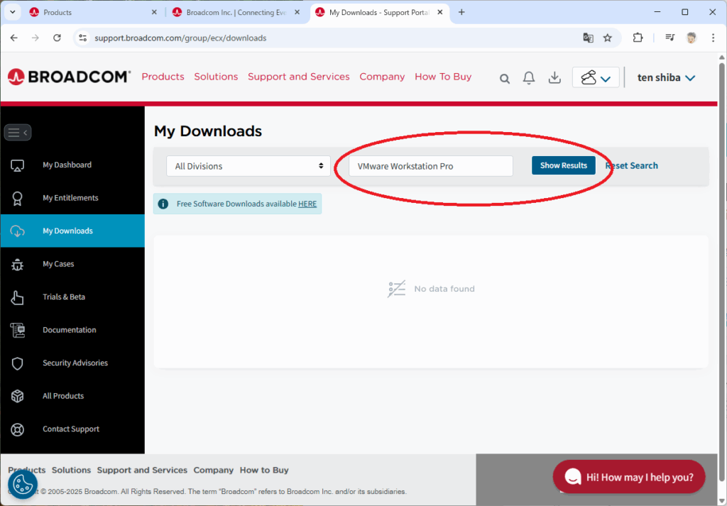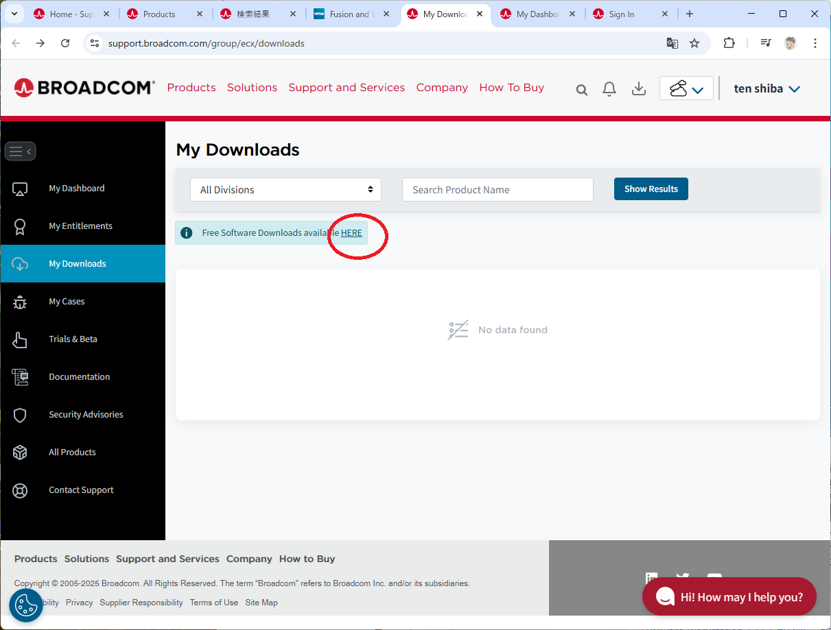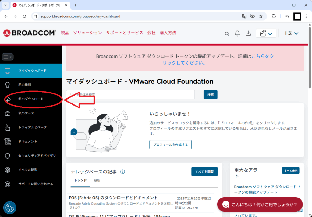 ▲ Broadcomアカウントでログインしているとダッシュボードの画面に遷移します。