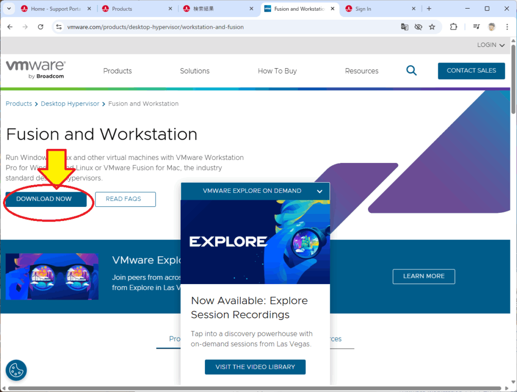 VMware Workstation Pro(VMware Player)のダウンロードまでが大変です。