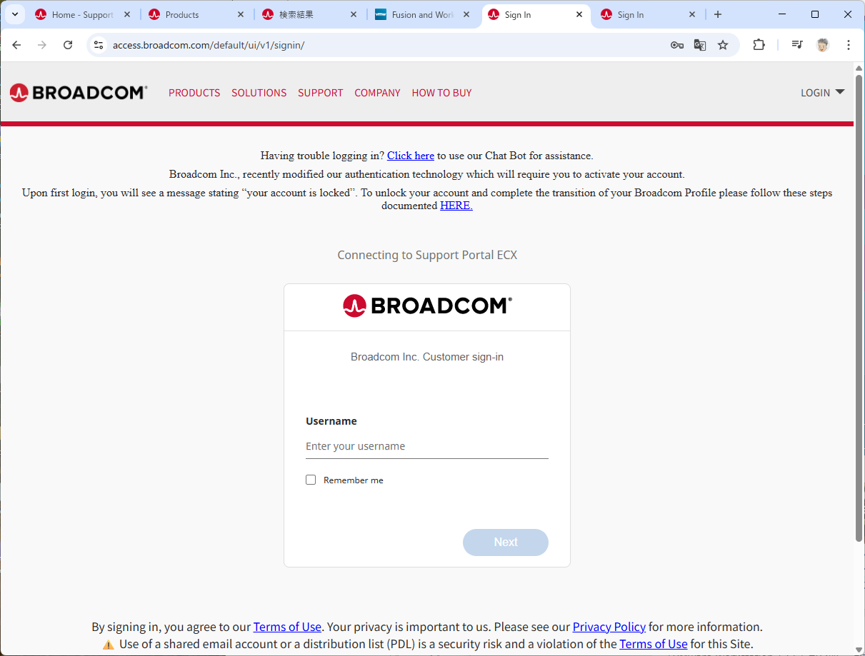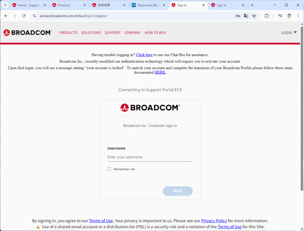 ▲ Broadcom アカウントを持っている場合は「Login」持っていない場合は「Register」