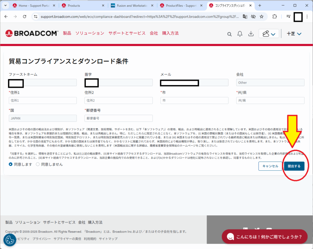 ▲ 必須事項を入力後、「提出」ボタンでダウンロードの準備がやっと整ったようです。
