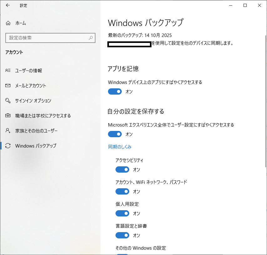 コントロールパネルの「アカウント」内にある「Windowsバックアップ」です。