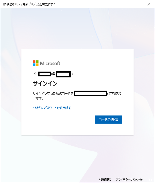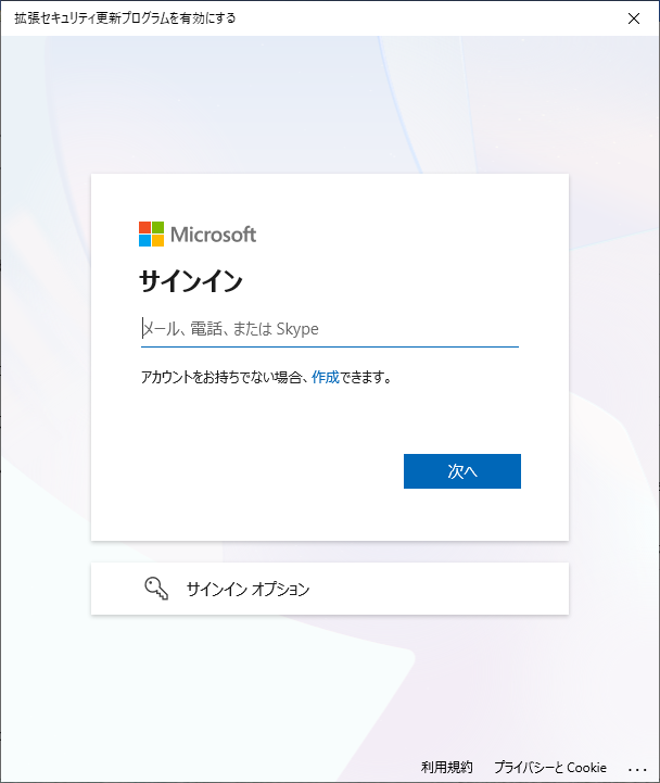 「拡張セキュリティ更新プログラムを有効にする」画面になります。